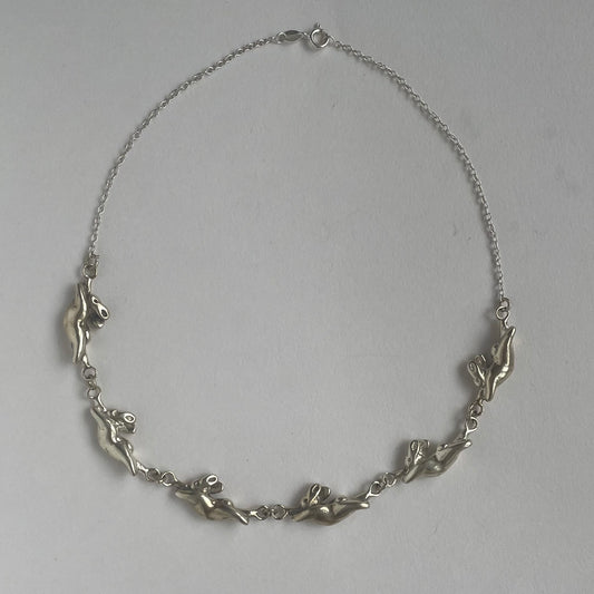 Dancing Bunny Choker Necklace - Silver