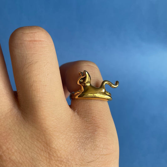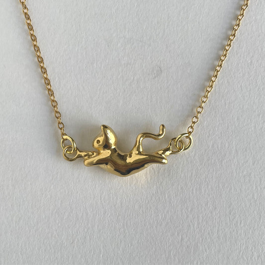 Dancing Cat Necklace with Rounded Pearl - Gold