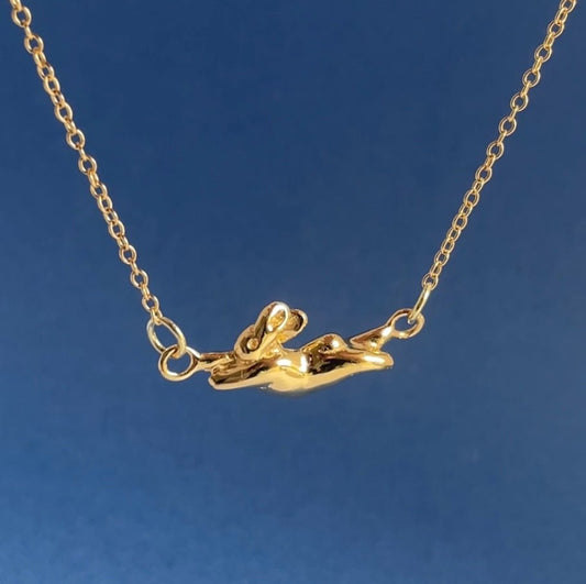 Bunny Necklace, La Conejita Necklace with Rounded Pearl - Gold