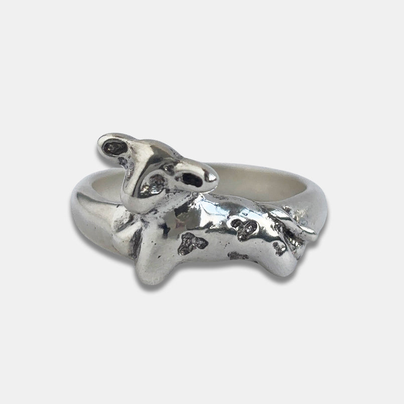 A quiet tribute to strength, stillness, and simplicity. Sculpted with soft detail, this solid silver ring features a miniature cow, calm-eyed and grounded.