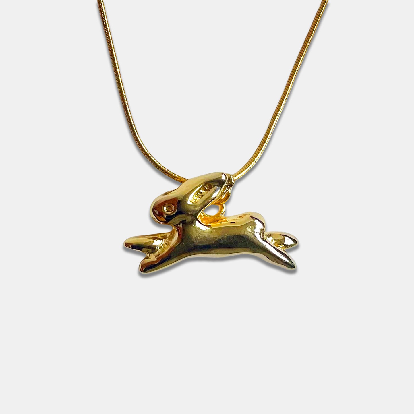 The Conejita Necklace in gold mirrors the charm of its ring counterpart.